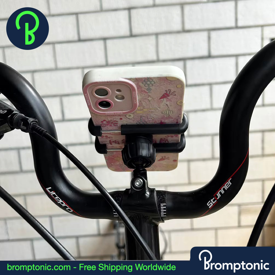 Houd je telefoon perfect gepositioneerd op je Brompton - licht, elegant en veilig.