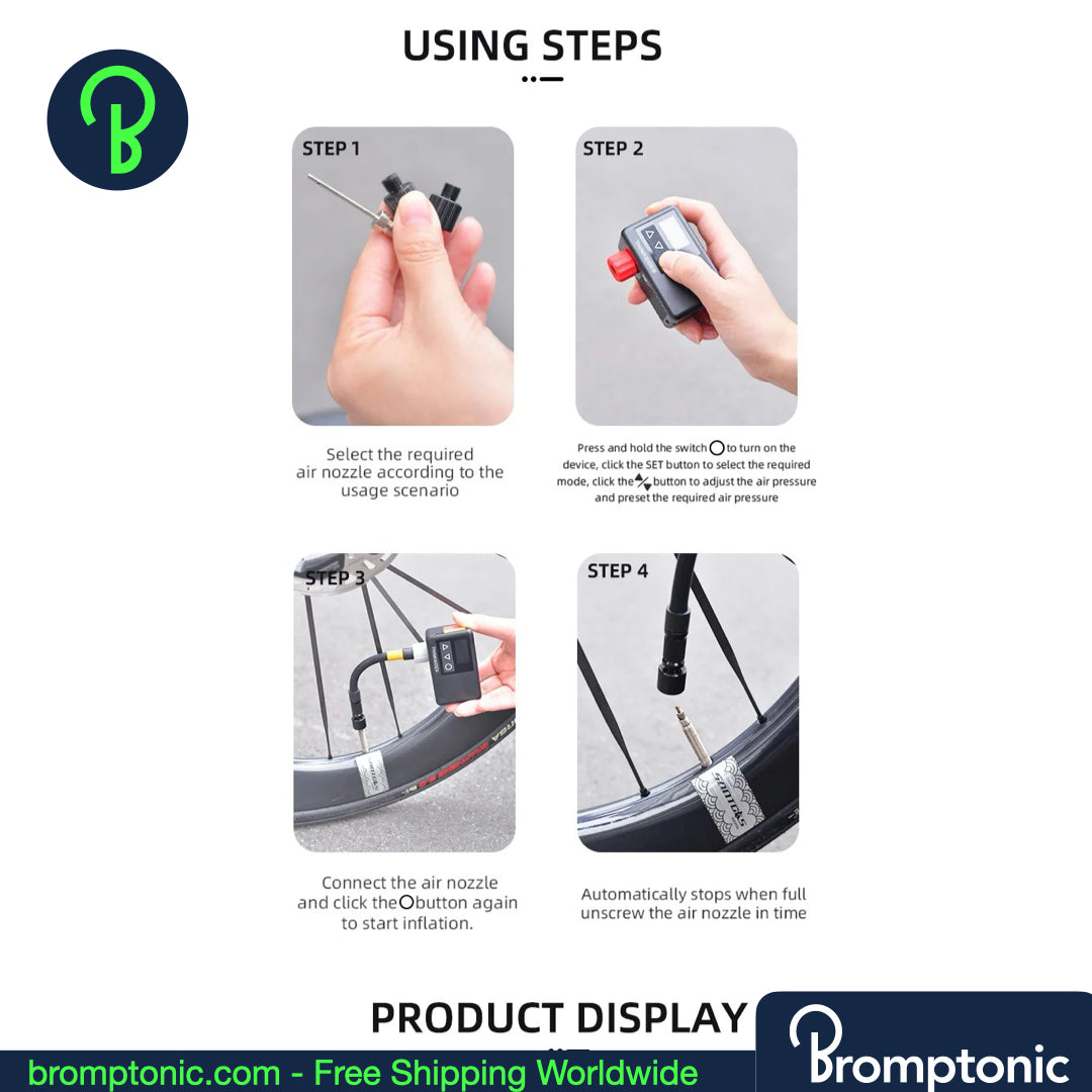 Most standard bicycles run on 40–70 PSI — but a Brompton needs almost twice that pressure for optimal performance. That’s why this compact 120 PSI electric pump is the perfect match for Brompton owners.