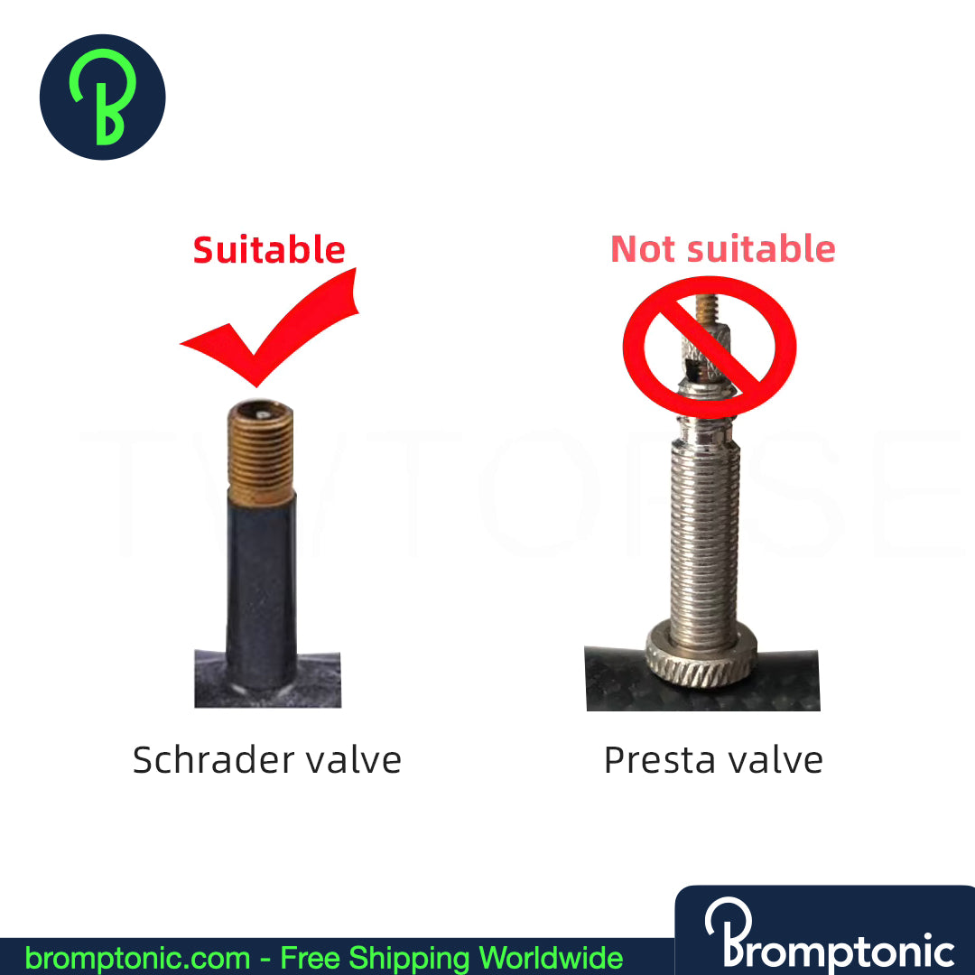 - Compatibilité : Brompton A Line, C Line, G Line (valve Schrader)